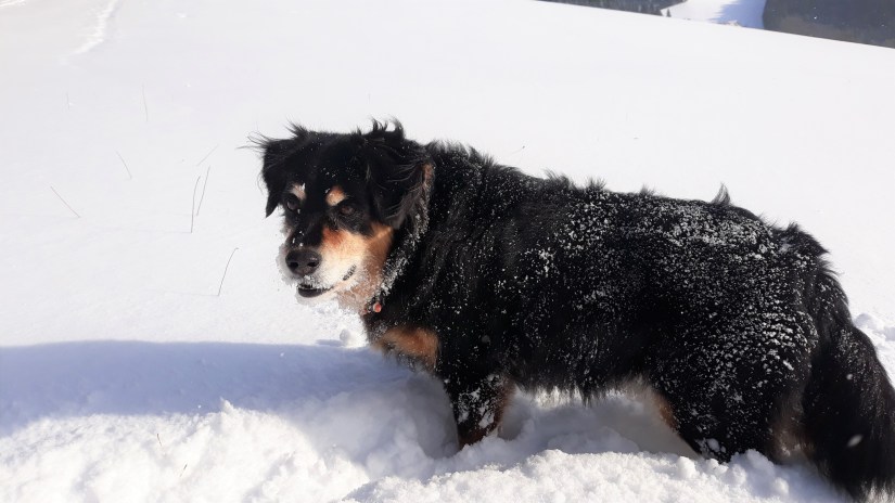 Pfoten, Beine schneiden: Damit nicht soviel Schnee hängen bleibt, sonst bilden sich leicht lästige Schneekugeln an den Beinen und in den Pfotenballen.