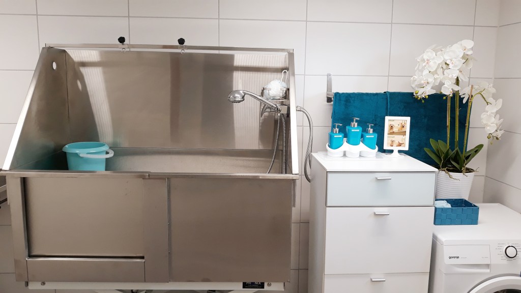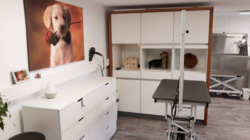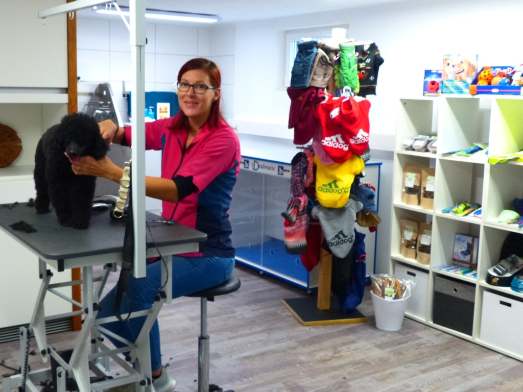 Mein Salon Mein kleiner aber feiner Arbeitsbereich. Hier schneide, schere oder trimme ich die Hunde je nach Rasse. Der Wartebereich für Kunden. Gerne könnt ihr bei einer Tasse Kaffee, euren Liebling bei der Pflege zusehen. Der Bade und Föhnbereich. Mein Hund Mailo hier in der Hundebadewanne. Es gibt auch Hundezubehör wie: Pflegeartikel, Hundbekleidung, Halsbänder, Leinen, Leckerlis und Kauartikeln,… Teilen mit: Klicke, um auf X zu teilen (Wird in neuem Fenster geöffnet) X Klick, um auf Facebook zu teilen (Wird in neuem Fenster geöffnet) Facebook Gefällt mir Wird geladen …